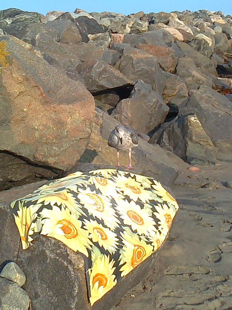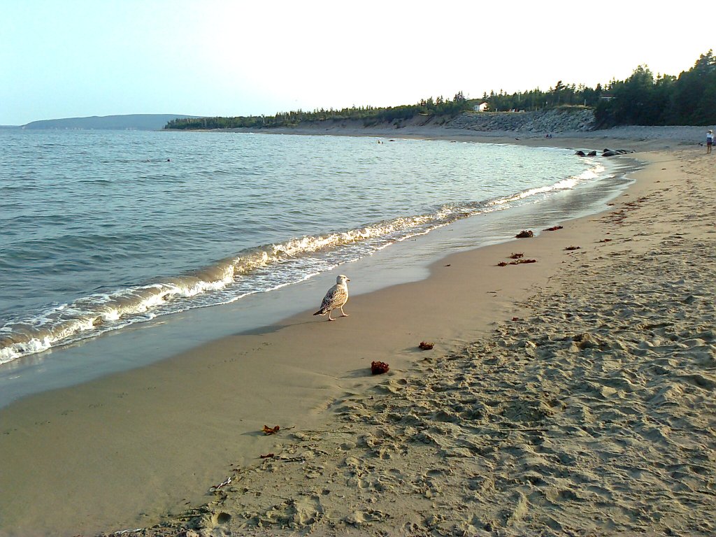 Back home in Cape Breton I began paying more attention to our local gulls. One summer I felt a special kinship with a particular herring gull. At the end of the day, after the beach emptied, I would spot this same gull (I presume) perched out on the rocky breakwater, catching the last rays of the sun. I would be sitting onshore, already in the shade, mesmerized by the kaleidoscopic play of the light on the water. Each of us was alone, content in our sunset solitude.