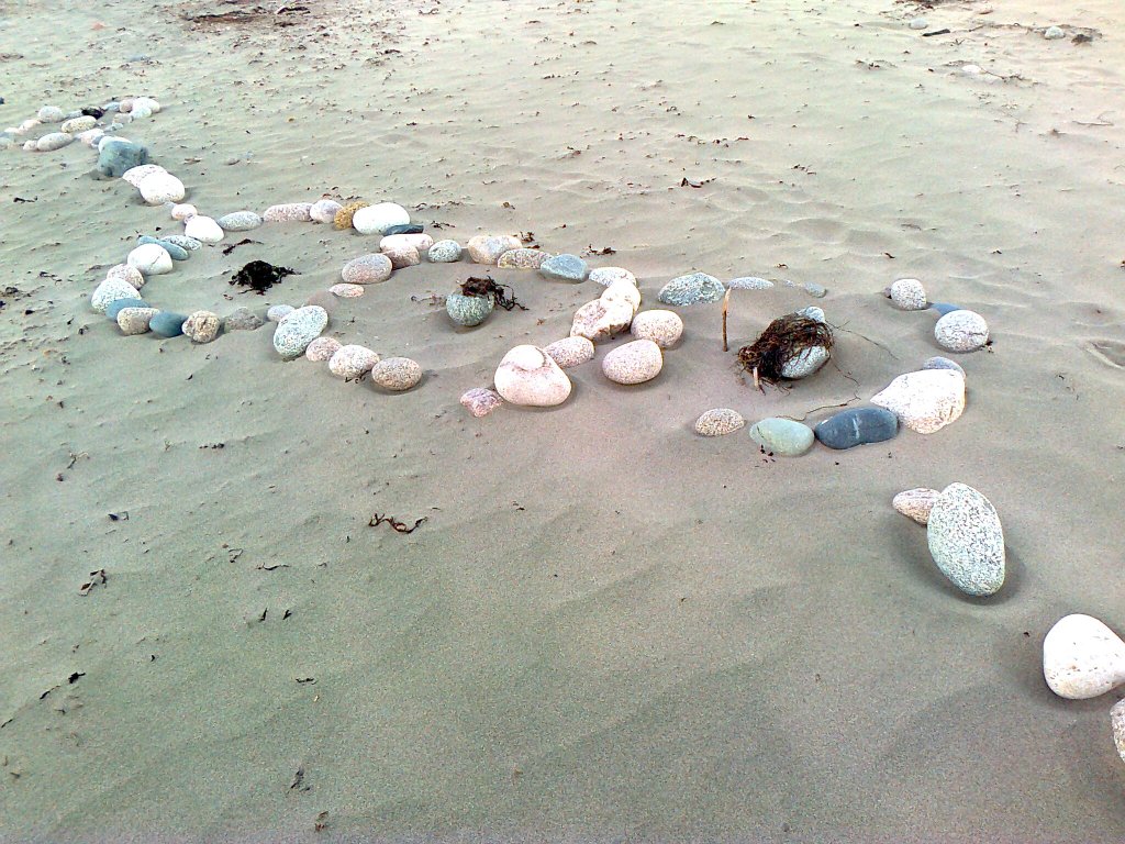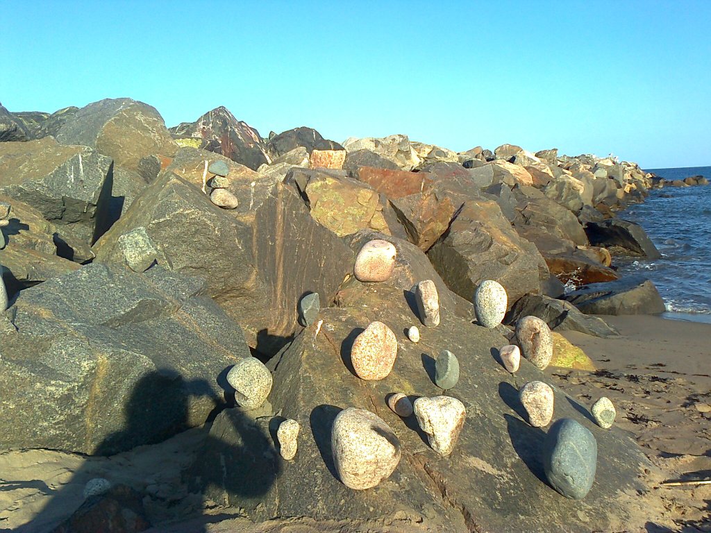 But some people leave behind beach creations, as delightful and ephemeral as summer itself. Beach art is not meant to last for generations or even days. It is, by its very nature, transient. And that is why it is so special. People at the beach, be they six or sixty, create for the pure joy of creating. It’s fun to shape damp sand with human hands, to pick out the perfect beach stone to add to a tower, to adorn a sandcastle with twigs and scraps of seaweed. The pleasure is in the making, not the keeping. And at the end of the day the makers walk away, leaving their creations to be swept away by wind and tide. Beach art appears and then vanishes. The sand, the rocks, the twigs and seaweed remain, returning to their own random beauty.