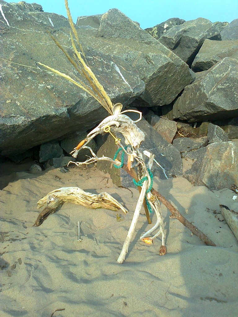 It is great though, that you see the art in our play, and I thank you for sharing your perspective. If only our hand on permanent changes in the landscape were as ephemeral, whimsical, and impermanent as these beach creations. If only our lost items were also made of seaweed and driftwood, and we understood the need for the things we make to ultimately break down again into earth’s natural components. And if we could hold some places in as special a state as they intrinsically are and find them so worth revering that we could stay our ever active hands…and bulldozers…that we could see what those places intrinsically give us, I would be a much happier member of the species.