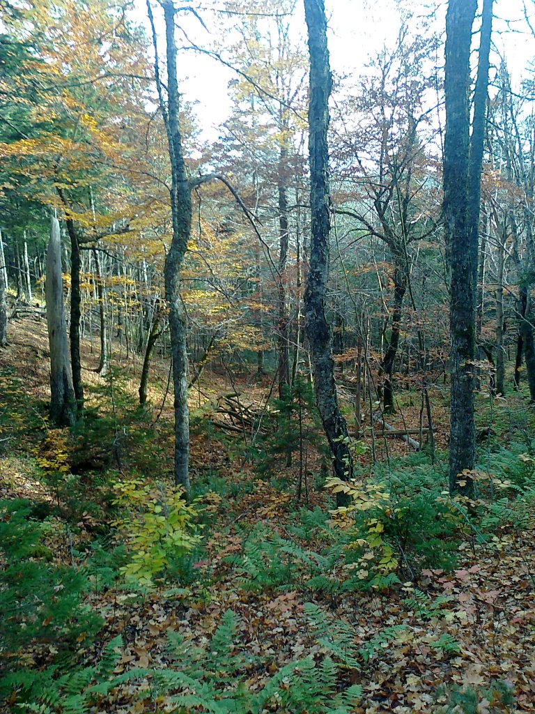 Nature doesn’t do straight lines but surveyors do. I had to scramble up that slope using all fours, but was rewarded by finding two more blazes up top. I peered around, looking for the next blaze mark. The area looked oddly familiar. Could it be?