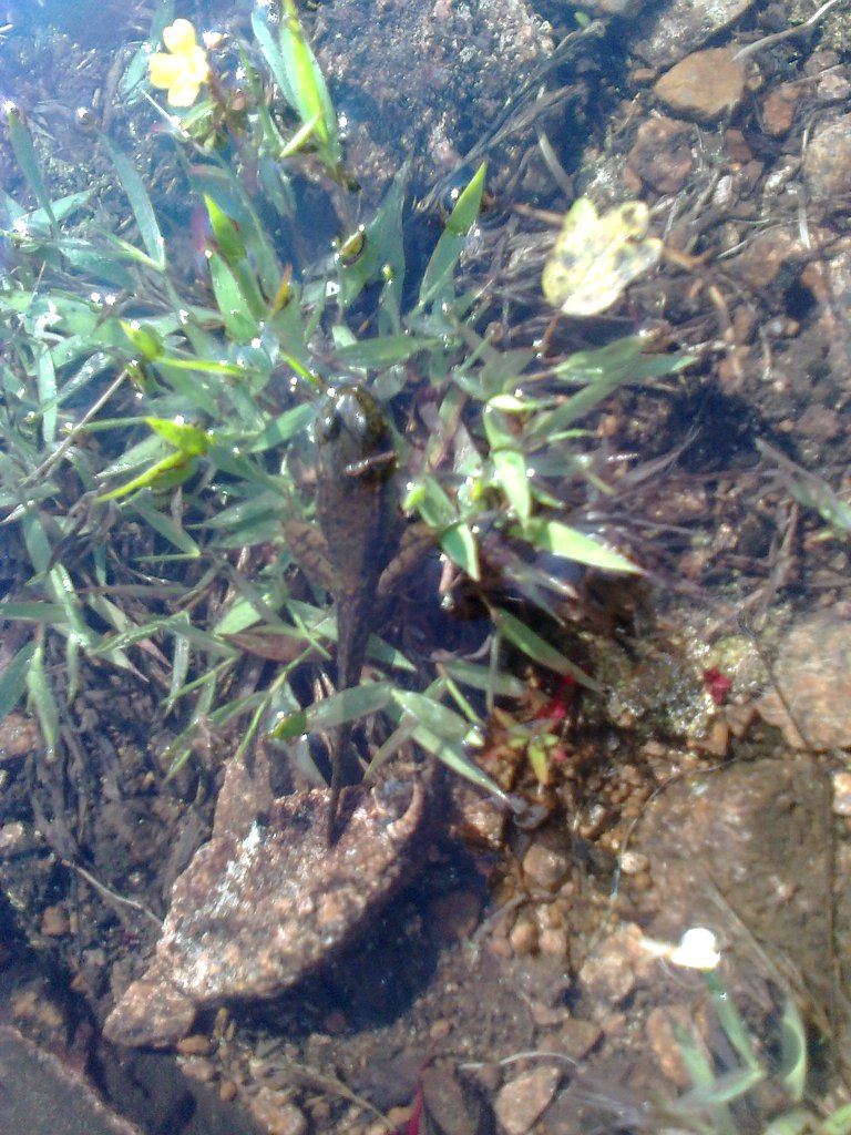 Then I sat down to dry off, relax, and enjoy the view. The pond level was so high that I set my chair in the shallows. I glanced down and there, right beside me, the miracle of metamorphosis was underway. This froglet seemed unaware of me, perhaps too perplexed by the strange turn his life had taken to care about the giant looming nearby. We hung out together for quite a while, pondering the mysteries of transformation.