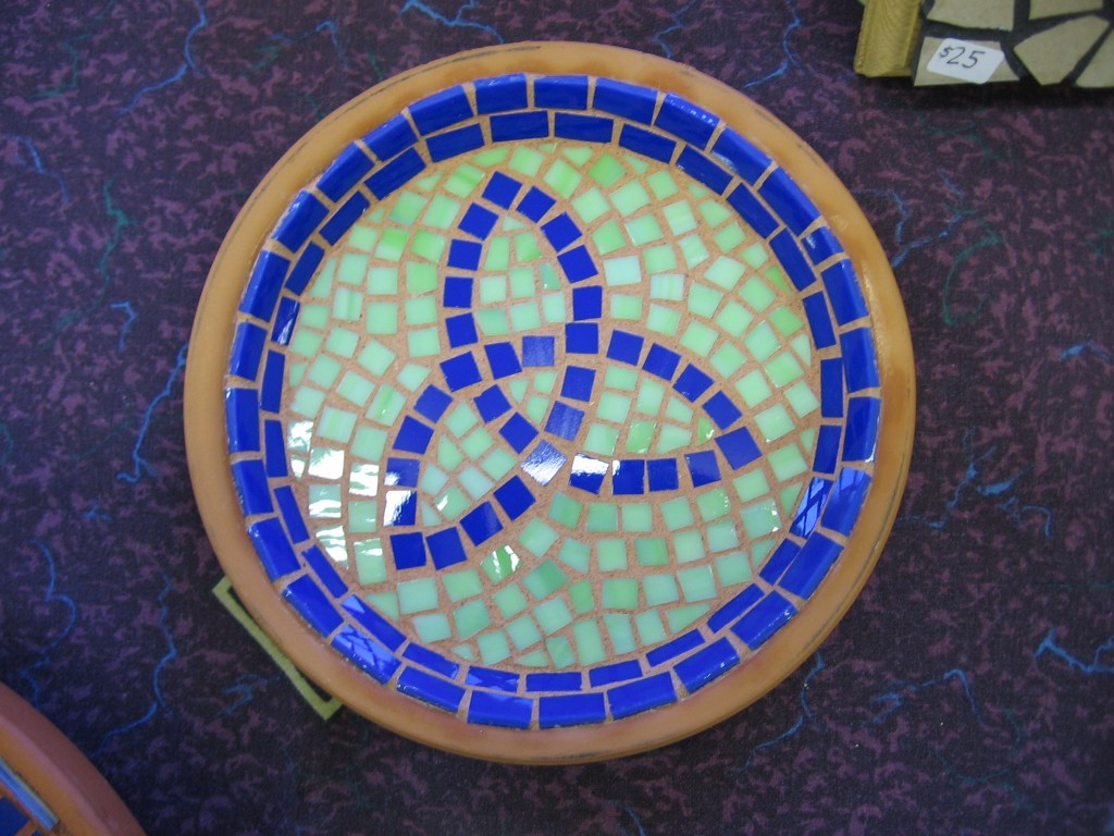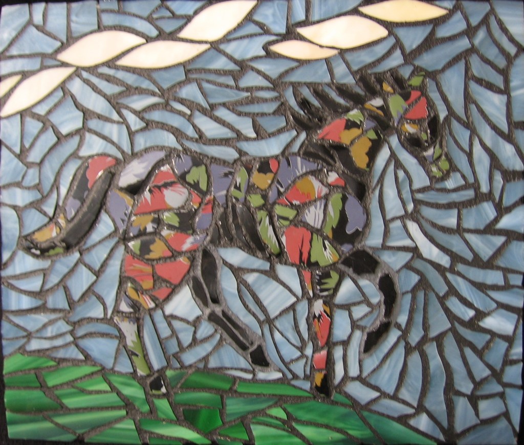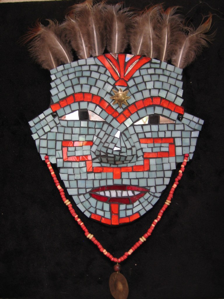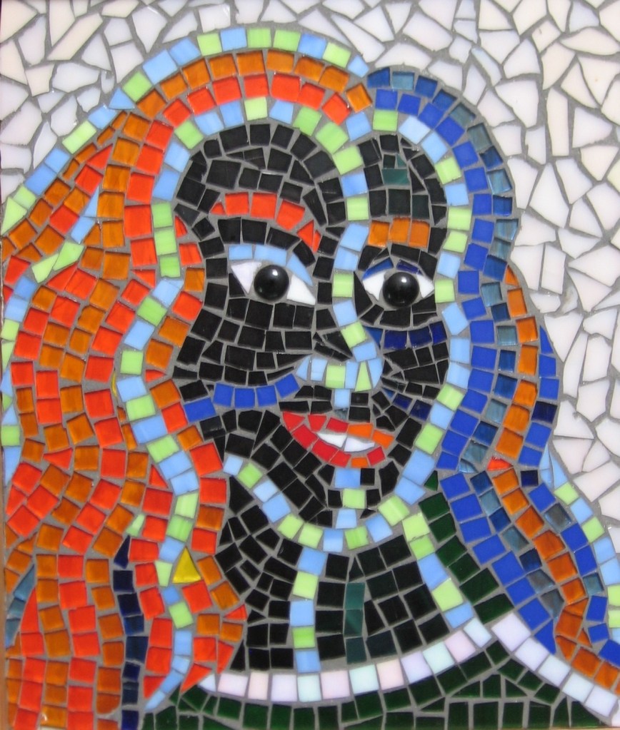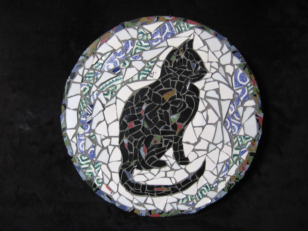 Here a slideshow of some of my mosaics, made from a variety of materials such as stained glass, broken dishes, beach stones, tiles, mirror shards, feathers, clay, beads and bits of jewellery.